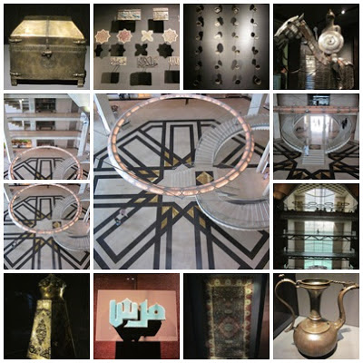 The Museum exhibits a vast array of ceramics, calligraphy, textiles, carpets, miniatures from throughout the Islamic world - notably Turkey and Iran, and each piece is carefully chosen and artfully displayed over four floors including temporary exhibitions. I always hone in on the ceramics and there are gorgeous examples -especially Iznik tiles from Turkey, but, this time I fell for the charming naive scenes depicted on tiles from Iran, the like of which I had not seen before...